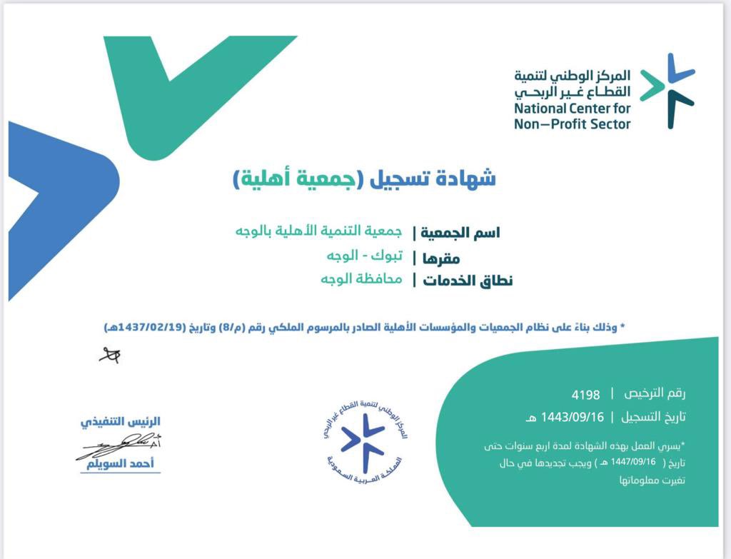 يسعدني نيابةً عن مجلس إدارة جمعية التنمية الأهلية بمحافظـة الوجـه